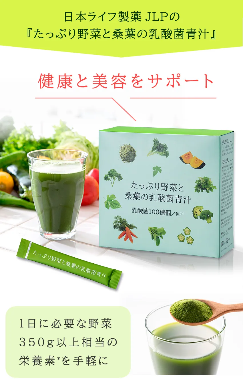 『健康維持』『野菜不足』『お腹すっきり』『糖質カット』のワードが気になりだしたら日本ライフ製薬 JLPの『たっぷり野菜と桑葉の乳酸菌青汁』