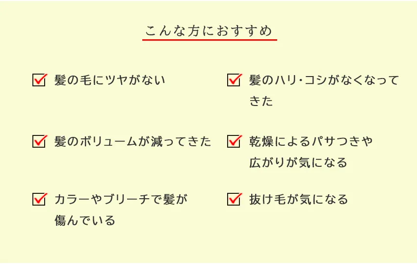 頭皮や髪を健やかな状態に導くことで薄毛や抜け毛の原因となるヘアサイクルの乱れを正常化。健康な髪を育てます。