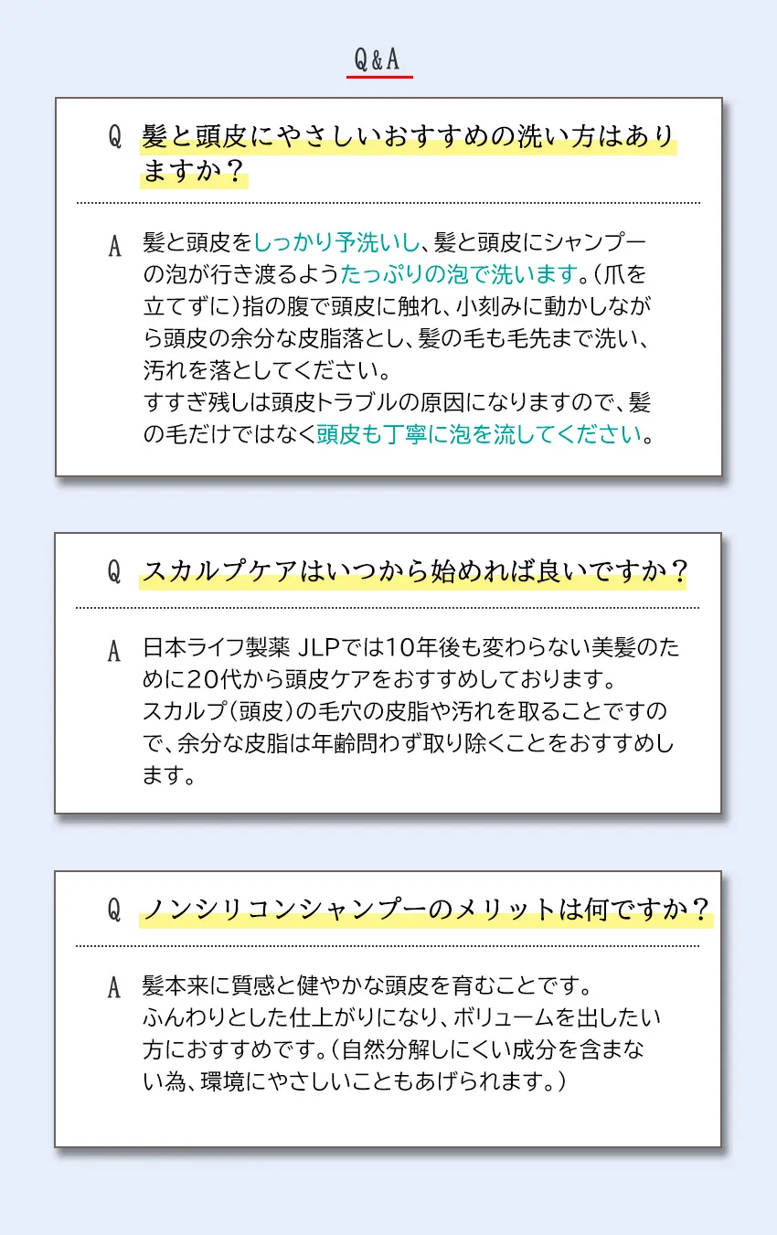 A日本ライフ製薬 JLPでは10年後も変わらない美髪のために20代から頭皮ケアをおすすめしております。