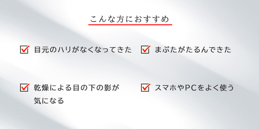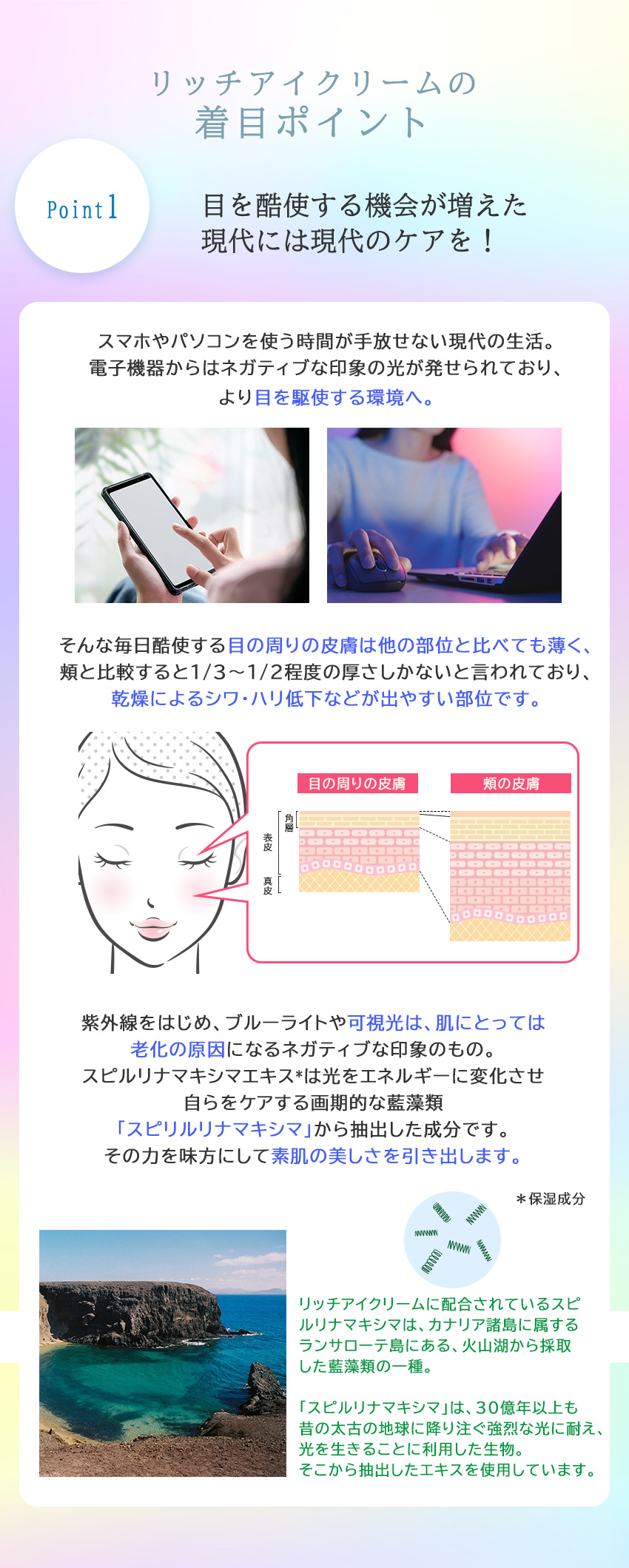 *エイジング(ケア)とは、年齢に応じたケアのことです。 *ブライトニングとは、キメを整え、透明感を与えることです。