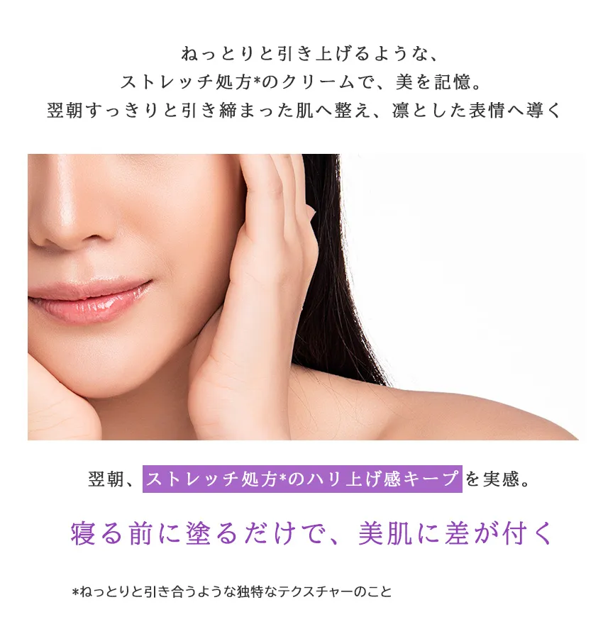 ねっとりと引き上げるような、ストレッチ処方*1のクリームで、美を記憶。