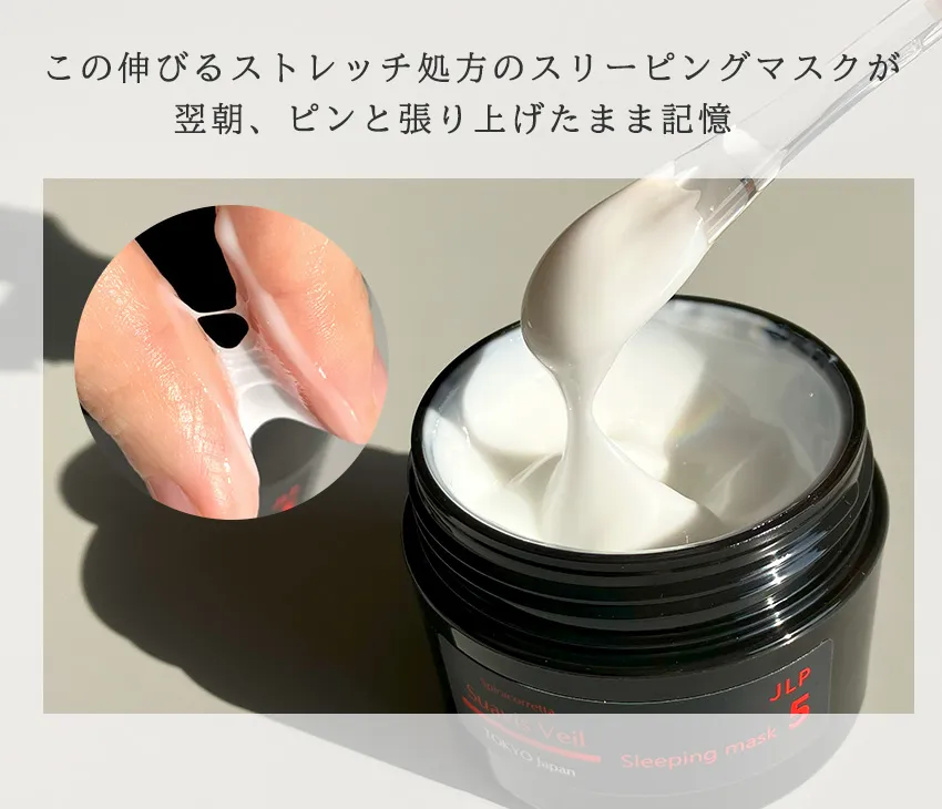 ねっとりと伸びるテクスチャーのストレッチ処方で肌にのせた瞬間とろける感覚が睡眠欲を刺激します