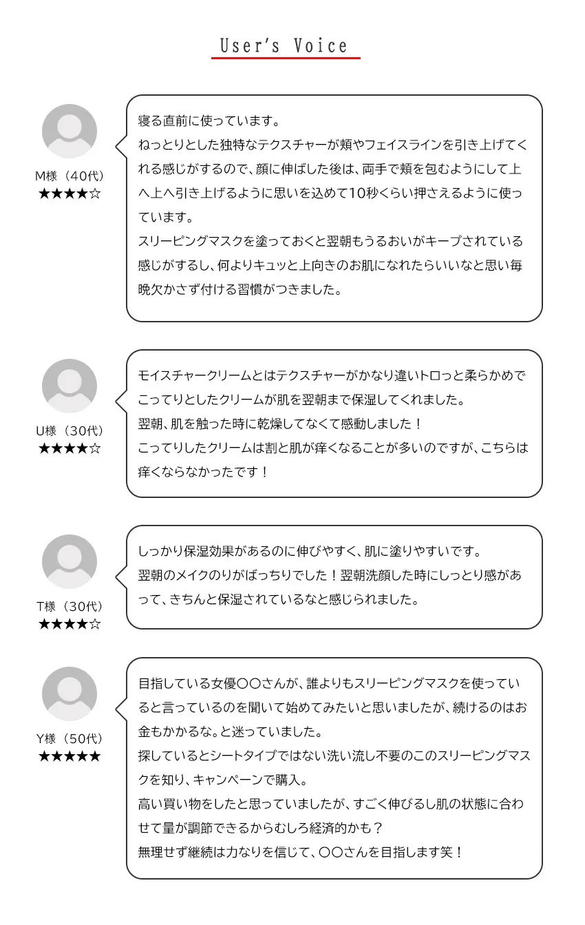 探しているとシートタイプではない洗い流し不要のこのスリーピングマスクを知り、キャンペーンで購入。