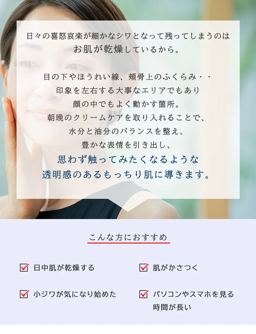 日々の喜怒哀楽が細かなシワとなって残ってしまうのはお肌が乾燥しているから。