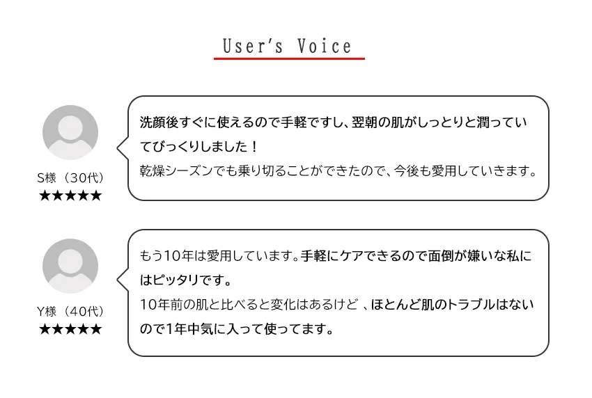 洗顔後すぐに使えるので手軽ですし、翌朝の肌がしっとりと潤っていてびっくりしました!