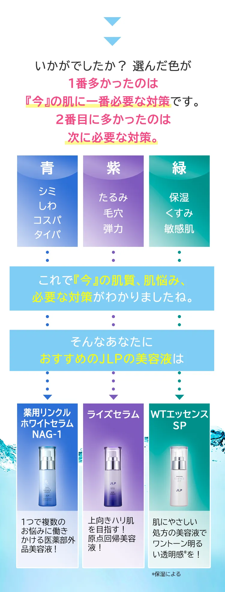 < 肌内部に存在する「水の通り道《アクアポリン*1》」に着目し、肌のすみずみ*2まで水分を届け、肌バランス(コンディション)を整えます。