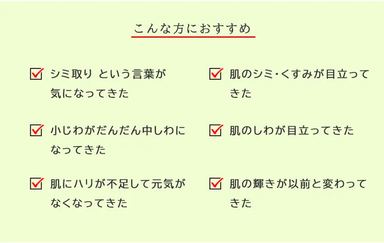 エイジングスキンのお悩み上位「シワ」「シミ」。