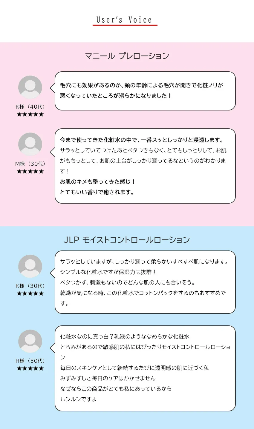 そのため、JLP モイストコントロールローションとあわせて使用することで、保湿だけでなく美容成分も角質層までしっかり届けることができます。